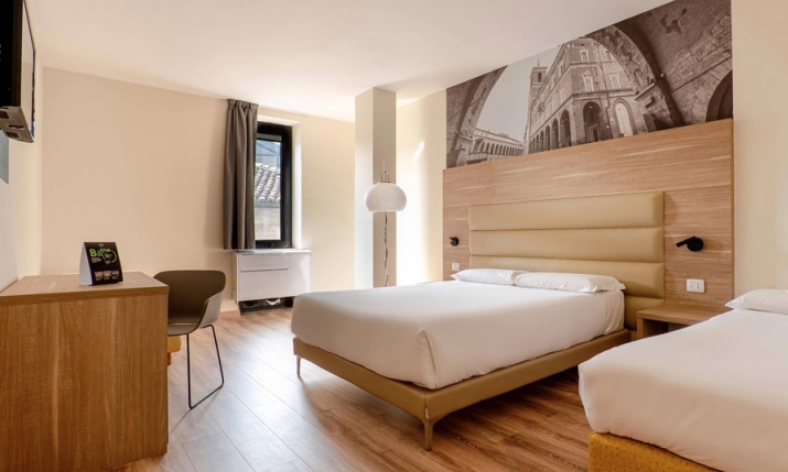 Il B&B HOTEL Fabriano Janus è un hotel 4 stelle situato nel cuore della città, a pochi passi dal centro storico e a soli 15 minuti a piedi dalla stazione ferroviaria. Fabriano, Città Creativa UNESCO, è famosa per la sua tradizione secolare nella produzione della carta, un’arte che ha reso questa destinazione unica al mondo. A meno di 20 minuti di auto dalla struttura si possono visitare le spettacolari Grotte di Frassassi, un tesoro naturale sotterraneo. Questa struttura moderna e accogliente è perfetta per turisti alla ricerca di un alloggio comodo e funzionale o per chi desidera una base ideale per esplorare le bellezze locali. Grazie ai suoi comfort moderni, l’hotel rappresenta un’opzione adatta sia per viaggi di lavoro che di piacere, con servizi pensati per garantire relax e praticità.
