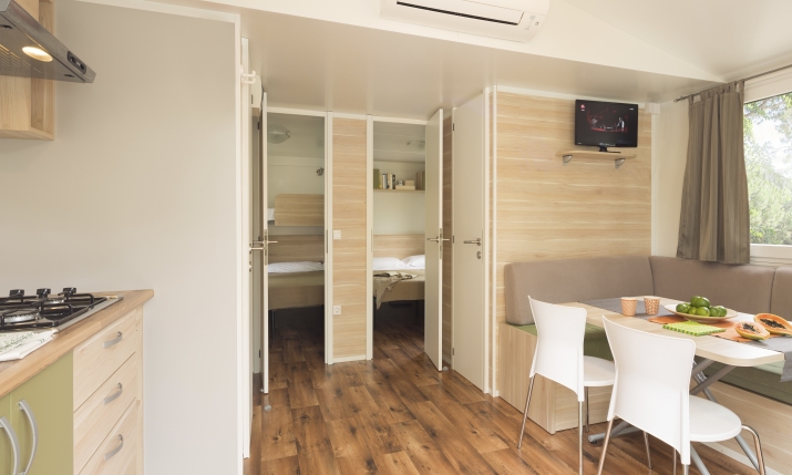 Un vasto assortimento di case mobili vi offrirà tutte le comodità di una casa nella libertà del campeggio.