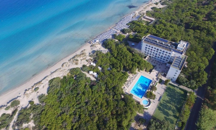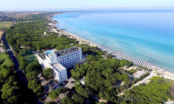 A meno di novanta minuti di volo da Roma e Milano ed a mezz’ora dall’aeroporto di Brindisi, l’albergo è immerso nel verde di una lussurreggiante pineta privata, tra il mirto, il ginepro, il lentisco e gli oleandri della profumata macchia mediterranea lungo il dorato arenile ed il cristallino mare di Gallipoli, dalle mille tonalità di azzurro.