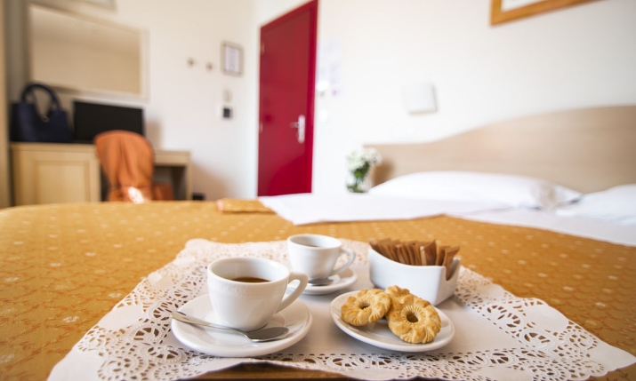 Al tuo risveglio concediti una ricca e gustosa colazione a buffet che soddisferà ogni palato. Chi ama il dolce potrà gustare croissant, torte, biscotti, cereali, marmellate, crema di nocciole e miele. Se preferisci il salato troverai salumi, formaggi e uova sode. Per fare il pieno di energia, il bar serve ottimi caffè espresso, cappuccini, the e bevande. Una ricca scelta di pane appena sfornato, frutta fresca e spremuta di arance completano il buffet. Siamo attenti alle esigenze di ogni ospite: troverai anche alcuni prodotti gluten free sia dolci che salati.